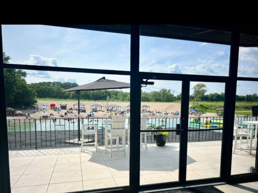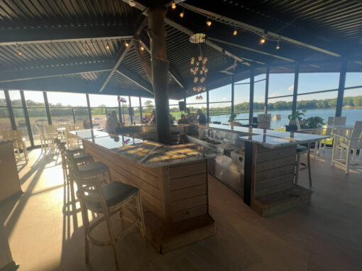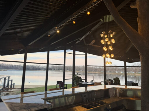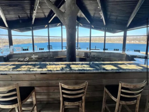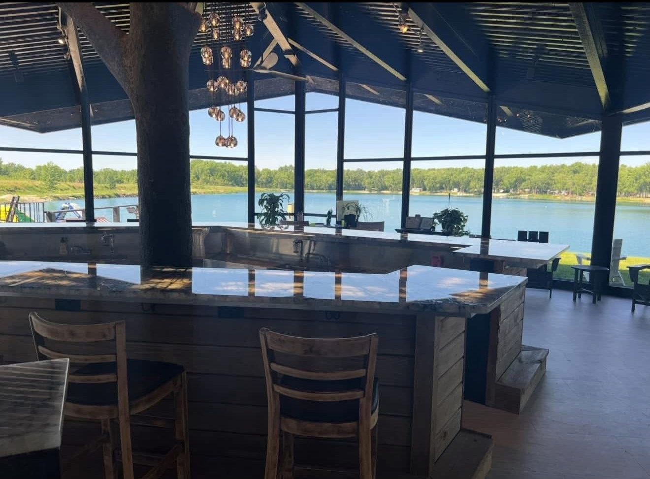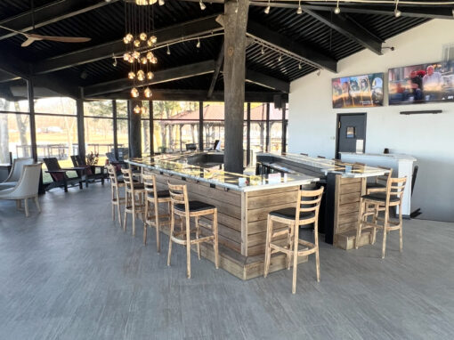 Chill out in our bar and have a drink and enjoy the views of our lake! Our bar is newly renovated and includes Brazilian Crystallo countertops, and vintage charm with our refurbished original barstools!