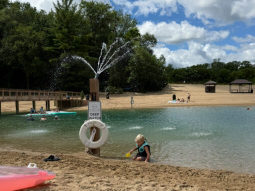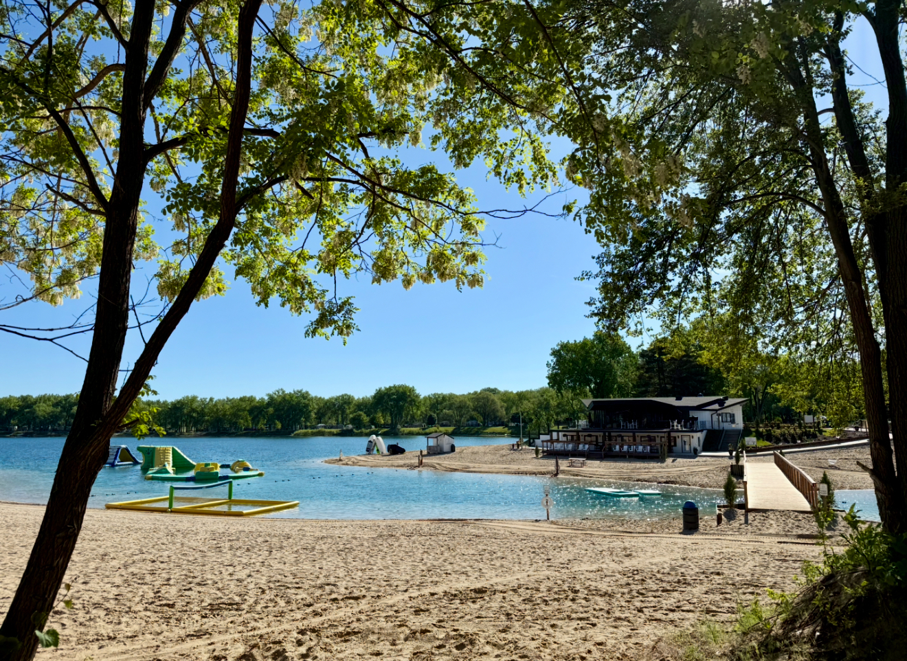 Enjoy our incredible soft sandy beach and our clean, clear water. It is crystal clear because of the spring fed source and our pure sand/ gravel bottom. The deepest part of the lake is 90 feet with average depths of 40-60 ft, due to the historic sand quarry operation before Pearl Lake became a recreational hotspot. We consistently groom our sand to keep it clean and fluffy!