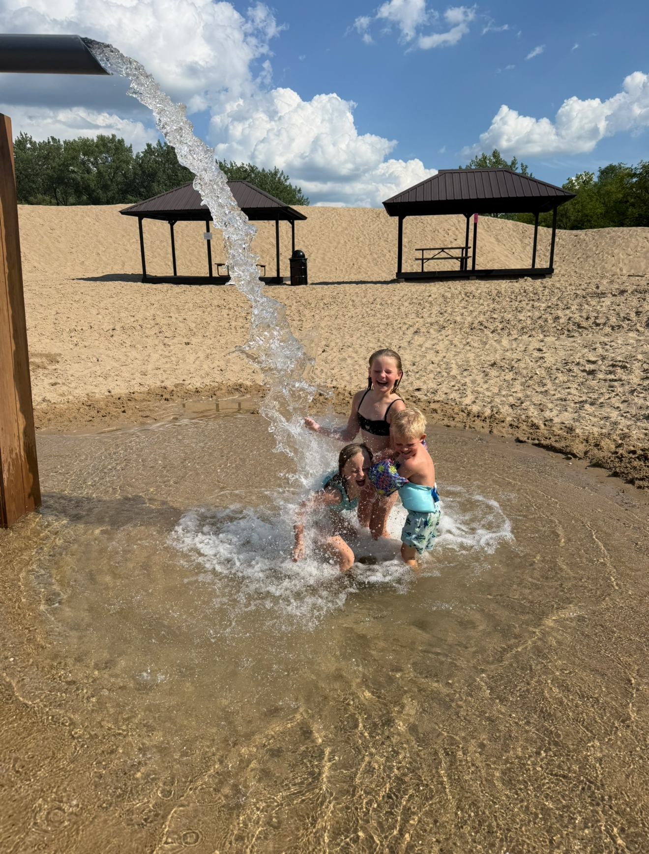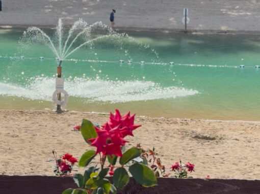 - Large fountain at South end of the beach for shallow splashing and fun.