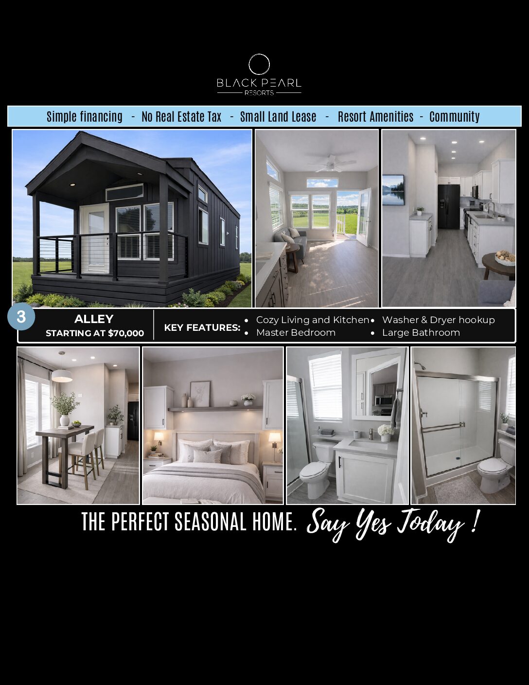 Custom order your new park model cottage and place it on a beautiful seasonal site here at Pearl Lake Beach!