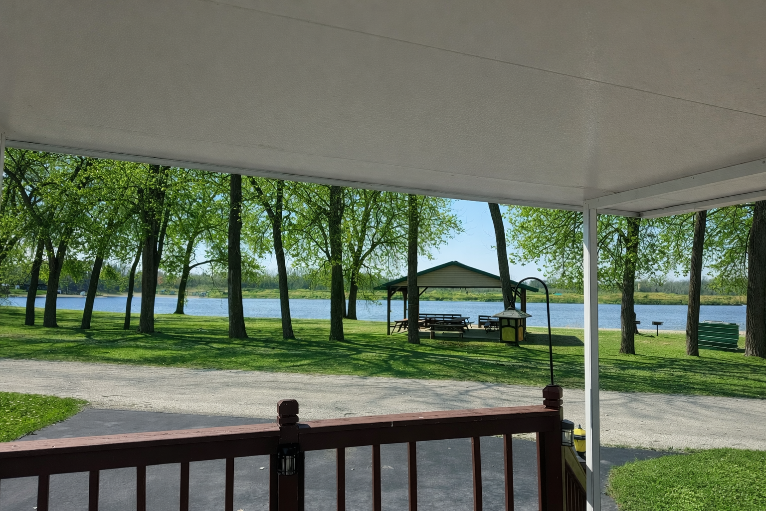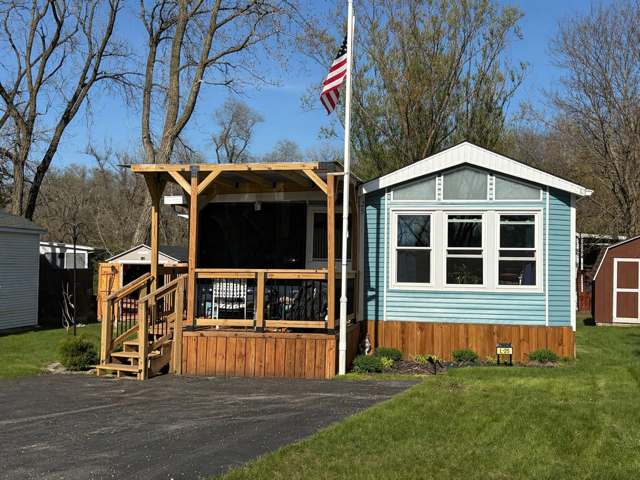 - New covered front porch and roll down shade screens